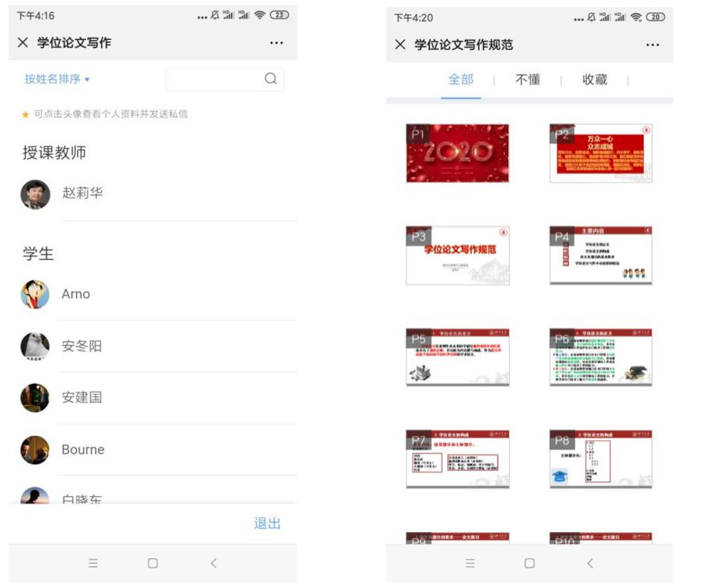 经过周密安排和精心准备,2020年2月1日晚,赵莉华老师率先通过雨课堂平台为学院以本、硕、博毕业生为主的180余名同学在线讲授了《学位论文写作规范》课程,为同学们撰写学位论文开启线上指导。