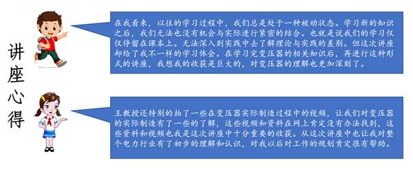 “纸上得来终觉浅,绝知此事要躬行。”通过行业专家讲座,让员工们有机会跳出课本,从应用的角度去学习知识、思考问题。两场讲座结束后,同学们纷纷表示讲座不仅加深了对变压器知识的理解,同时对电力专业以及电力行业有了更深刻的认识与感悟,激励电气学子志存高远,砥砺前行。