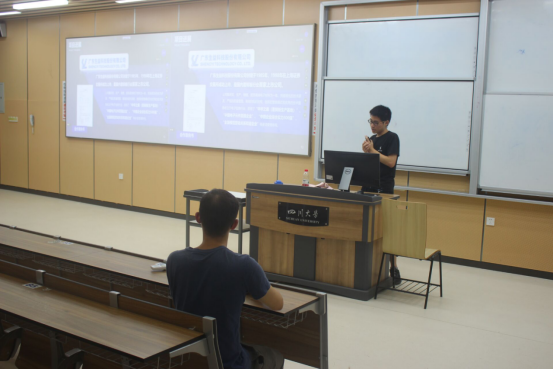 随后,受邀团队向同学们展示了其获奖项目作品,并在展示中提到,在项目组织中需要合理规划团队任务,重视团队组建的科学性,紧抓团队中资源整合,以确保项目实施的可行性。另外,参赛团队需意识到资源获取的渠道的多元性,在搜索资源时,团队之中的每个人都需放长眼光,扩大范围。