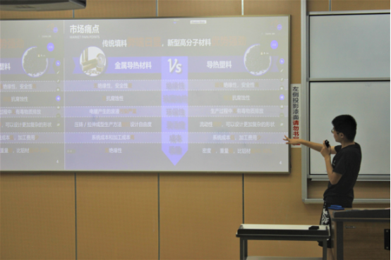 在与同学们问答交流后,该团队在总结中提出:“互联网+”创新创业大赛有利于培养同学们创新创业思维,训练大家的科研思想及意识,更促进了同学们专业理论和实践应用的结合,希望同学们能勇于挑战自我,努力发扬学院坚持不懈的学风。