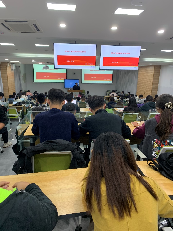 讲座在热烈的掌声中开始,白维教授级高级工程师以“能源行业智能安全管控”为切入点,通过智慧电厂发展案例、智慧电厂发展愿景详细探讨智慧电厂建设关键技术与应用研究,为同学们展开生动的研讨课。讲座上,参会师生积极发言参与讨论,现场氛围活跃。