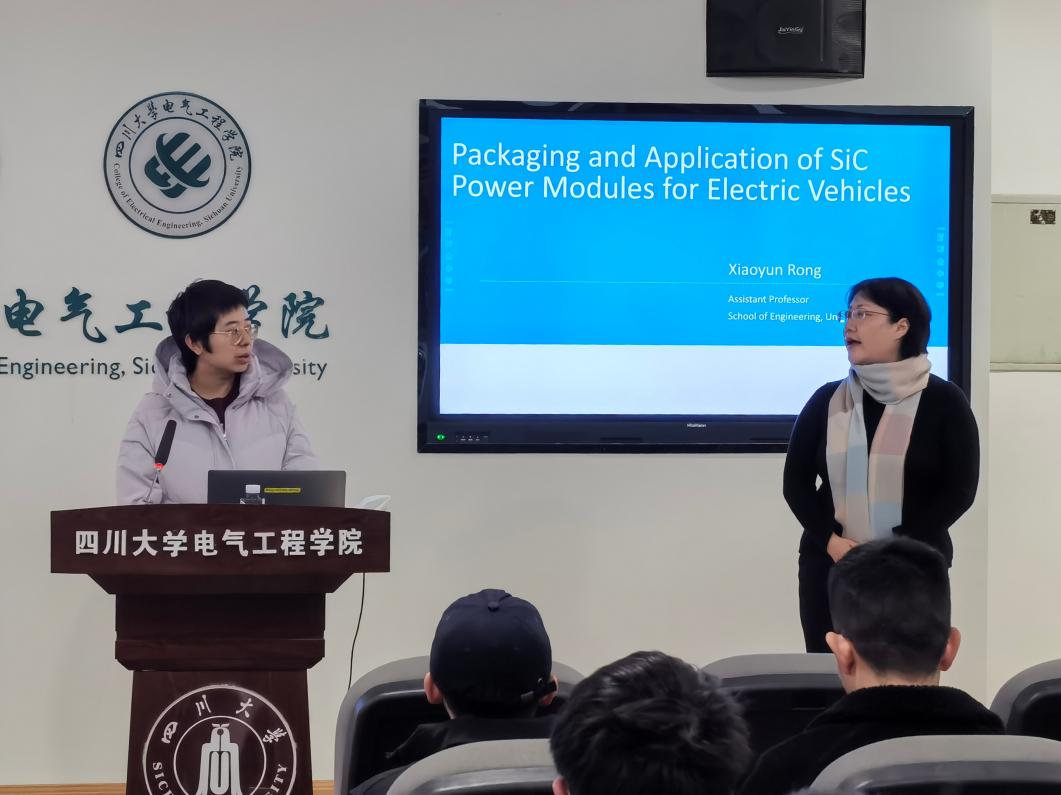 此外,她还分享了硅功率模块封装技术在可再生能源、智能电网和工业自动化等电力电子领域的广泛应用前景。荣博士的分享不仅提供了宝贵的学术视角,也为同学们开阔了未来职业发展的视野。