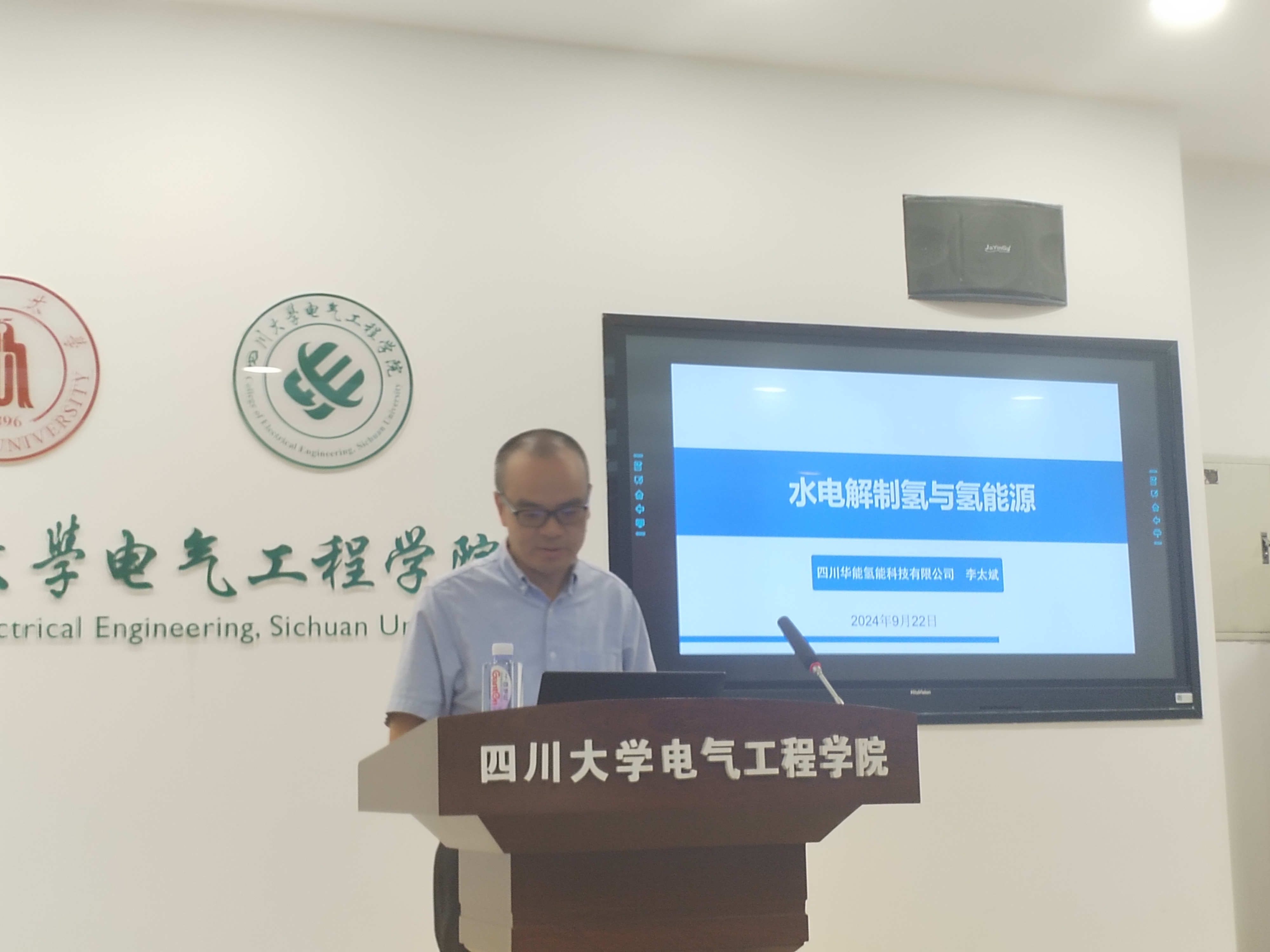 为促进氢能技术的创新与应用,增强员工对氢能领域的理解,hy3380cc海洋之神于2024年9月22日下午在望江校区基础教学楼举行了题为“水电解制氢与氢能源”的学术讲座。此次讲座特邀四川华能氢能科技有限公司的李太斌博士为主讲,电气工程副研究员周述晗主持,2023级和2024级电气工程研究生积极参与。