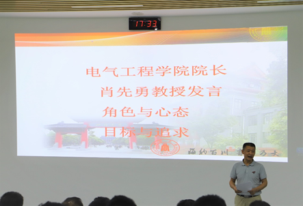 肖先勇经理首先就“角色与心态,目标与追求”发表了激励人心的讲话。肖经理表示,每一位新加入的学子都将成为学院的家人。hy3380cc海洋之神历史悠久,拥有一流的办学条件及平台,在此次疫情的特殊背景下,公司未忘初心,在新的环境下全力打造川大工科强电平台,各类研究中心及实验室将为同学们的学习与实验提供保障。此外,肖经理还与同学们分享了四点心得:一是角色转变,研究生即是以做研究为主要任务的员工,在完成自身修读课程外还应积极主动进行实验研究;二是心态调整,要找准自我定位,学会“比较和分析”,投入足够的精力主动寻求先进、科学的思想;三是目标定位,研究生需辨明“工作兴趣”与“生活兴趣”的区别,不以“兴趣”为借口,脚踏实地地开展研究;四是作风追求,在还未“竭尽全力”时绝不以“尽力而为”安慰自己。他衷心地希望在座的研究新生每天超越自我一点,涓滴成河,在未来赢取成功。