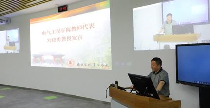 随后,学院教授委员会主席刘俊勇教授从理想与目标、大学平台的运用以及研究生的精神风貌三个方面和同学们进行了交流。刘教授表示,在当今环境下,研究生们的自我命运与国家命运、自我理想与国家目标应紧密联系在一起,“如何在未来扛起民族大旗”应是所有川大学子共同思考的问题。其次,大学不仅是提供知识与实验地点的平台,研究生应注重“交叉”,广交朋友、广听讲座,走出实验室进行跨学科交流,将学术与实践相结合。最后,刘教授就精神风貌问题与同学们进行交流,希望新生们注重专业能力,多与其他高校的同学进行交流学习,不断提升自我。