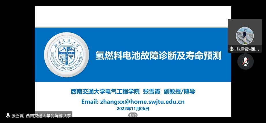 2022年11月6日下午,西南交通大学张雪霞副教授应邀为2022级电气工程专硕研究生开展题为“氢燃料电池故障诊断及寿命预测”的学术讲座。本次讲座采用腾讯会议线上举行,由臧天磊老师主持。
