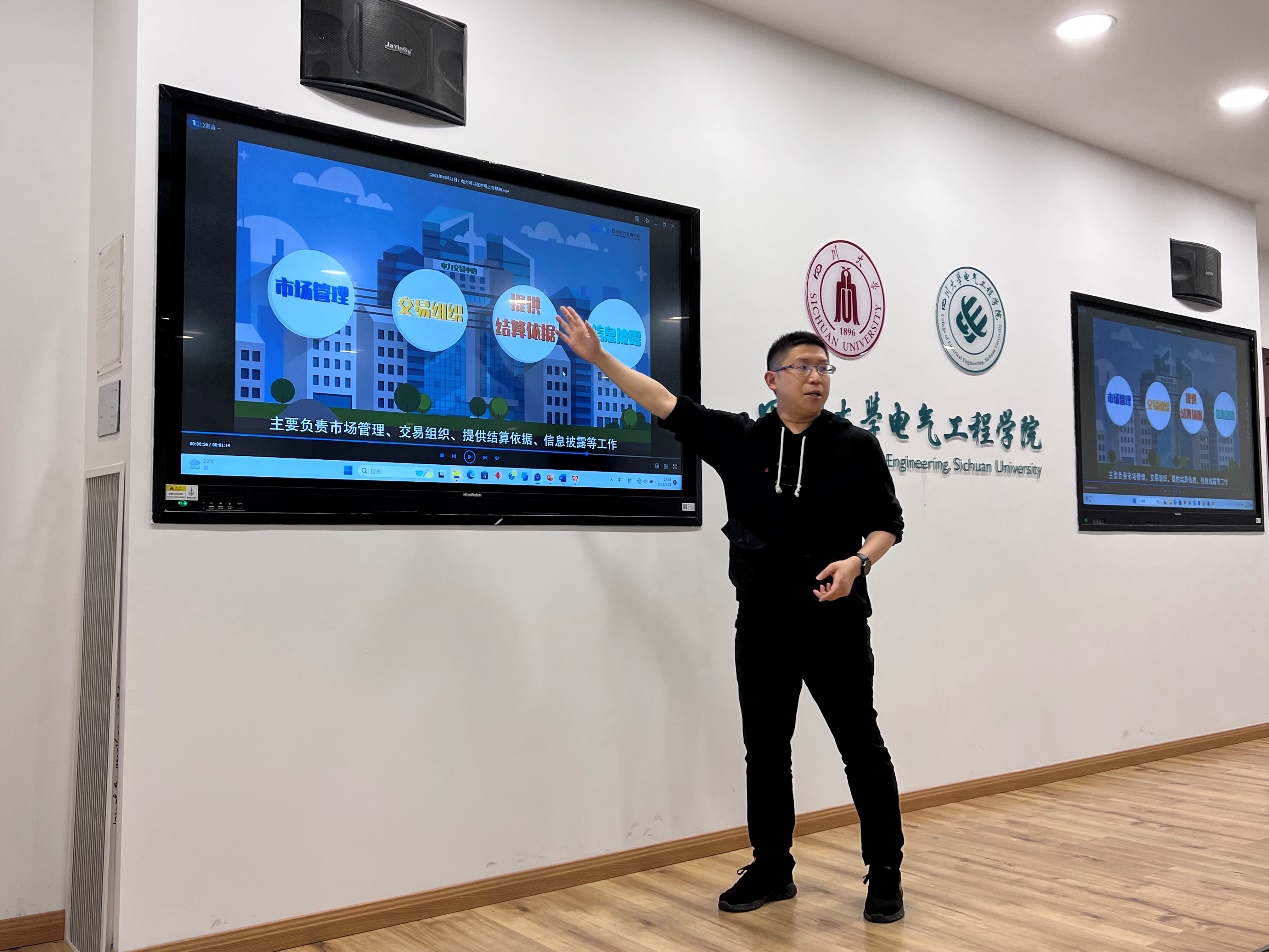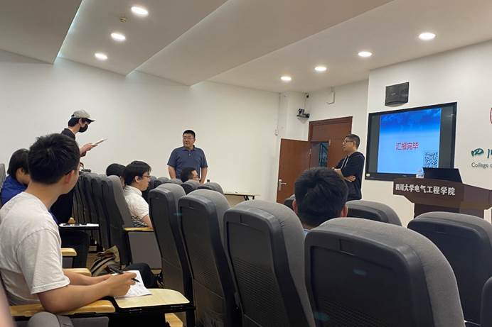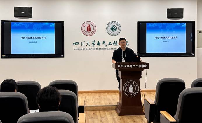 2023年5月21日下午,四川电力交易中心研究策划部陈礼频主任应邀在hy3380cc海洋之神基础教学楼B座206开展题为“电力市场体系及发展方向”的学术讲座。讲座由郑子萱老师主持,电气工程系师生30余人参加了讲座。