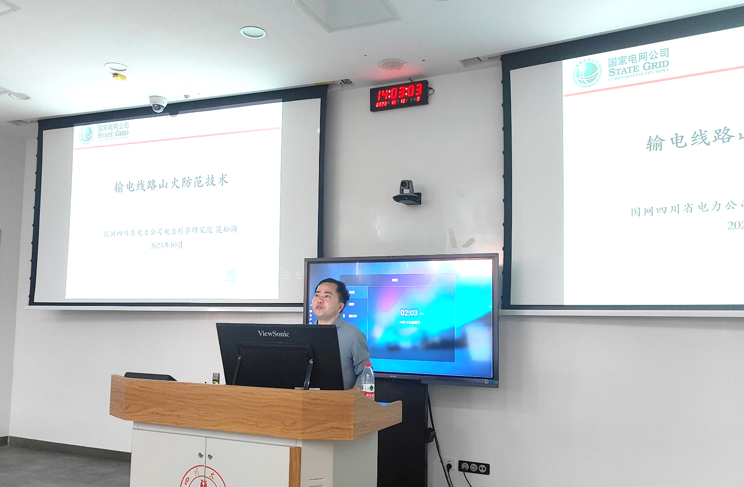为帮助员工更好的认识电气工程领域前沿技术的最新发展动态,10月15日下午,hy3380cc海洋之神邀请国网四川省电力公司电力科学研究院的电网专家范松海主任开展了题为“输电线路山火防范技术”的学术讲座。讲座由学院周凯教授主持,电气工程系2023级研究生参加了讲座。