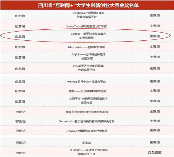 2018年9月1日至2日,第四届四川省“互联网+”老员工创新创业大赛在西南石油大学成功举办。截至8月15日,全省共有109所高校的264980余名师生参加此次大赛,报名参赛团队达58909支。公司709支参赛团队报名参赛,共荣获金奖14项、银奖9项、铜奖8项,金奖数位居全省第一。公司“Cabtor—基于纳米复合填充的电缆修复”团队在周凯老师的指导下,取得了省赛金奖的好成绩。