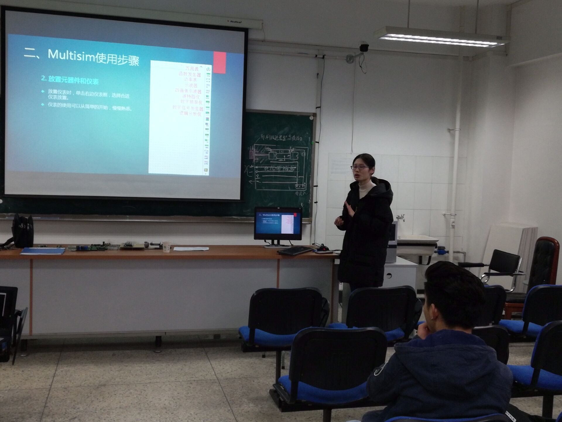 3月17日上午,“Multisim仿真软件应用实践”讲座主要针对18级新加入创新骨干成员进行Multisim仿真软件的培训。16级的庞崭同学根据自己的学习体会向新成员详细讲述了multisim软件使用入门技巧,以及利用软件仿真实现电路修改的方法。