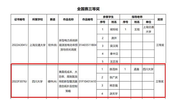 第一届高校电气电子工程创新大赛全国赛获奖名单详见:http://ces.org.cn/html/report/22092497-1.htm