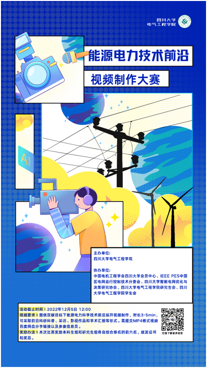 为把握双碳目标下科技创新的前沿动态,开阔员工眼界,培养电气、能源和计算机多学科融合的思维模式,学院于2022年11月2日至12月9日举办“能源电力科学技术前沿”视频制作比赛。