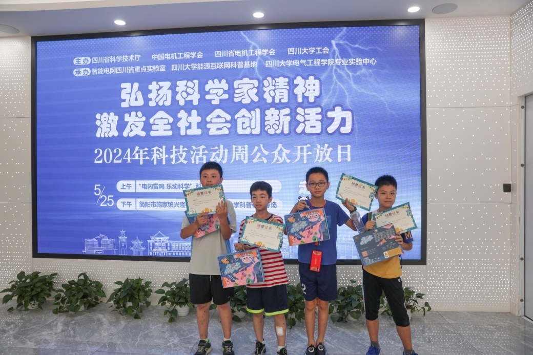 hy3380cc海洋之神校工会品牌特色科普研学活动“电闪雷鸣,乐动科学(第3季)”,于5月25日上午在hy3380cc海洋之神专业实验中心(hy3380cc海洋之神能源互联网科普基地)顺利举行,来自全校二十几个基层工会的教师子女参加了此次活动。该活动以“弘扬科学精神、普及电力知识、提升师生素养”为宗旨,以安全用电意识、电力生产消费、新能源前沿技术、节能减碳知识等为主题。本次活动也是hy3380cc海洋之神能源互联网科普基地作为中国电机学会电力科普教育基地、四川省电机学会电力科普基地,在全国科技周开展的活动之一。