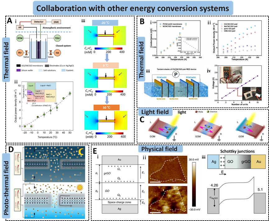图3.二维石墨烯离子通道与其它能量耦合增强绿色电能输出
