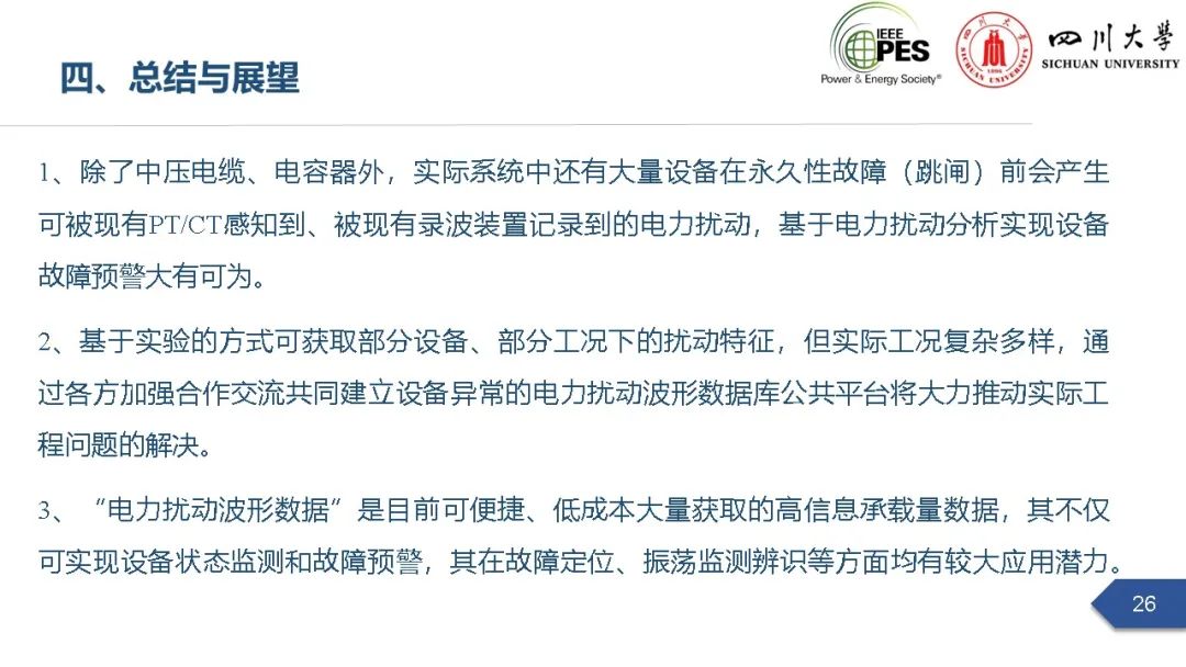 会上,hy3380cc海洋之神副研究员张文海作了题为“电力扰动分析在设备故障预警中的应用初探”的主旨报告,指出利用站端电压/电流互感器直接测量获取的电力扰动波形数据可以有效地感知设备和系统状态,并在此基础上针对中压电缆和电力电容器两类设备在永久性故障前期可能出现的扰动进行了探索性研究,提出了基于电力扰动监测的中压电缆和电力电容器故障预警方案。经本人授权,与大家分享报告PPT。