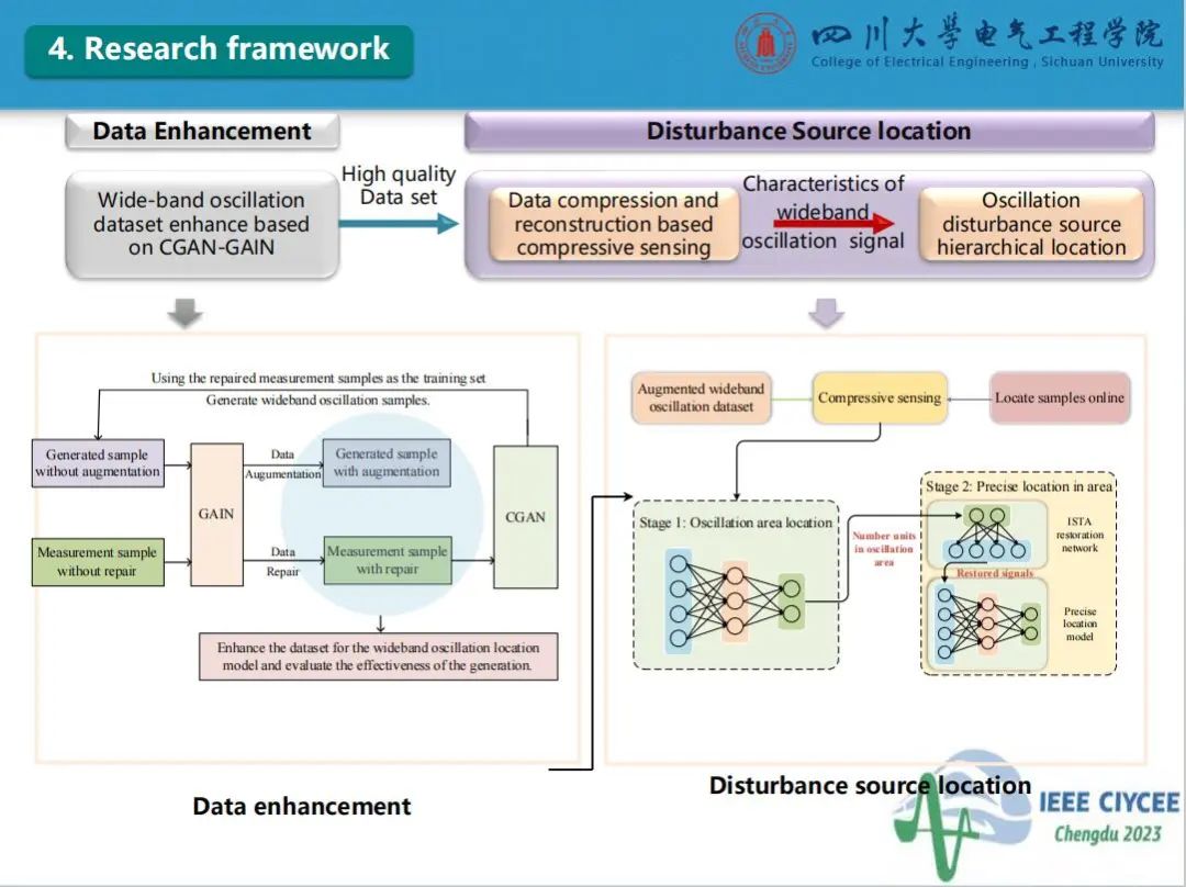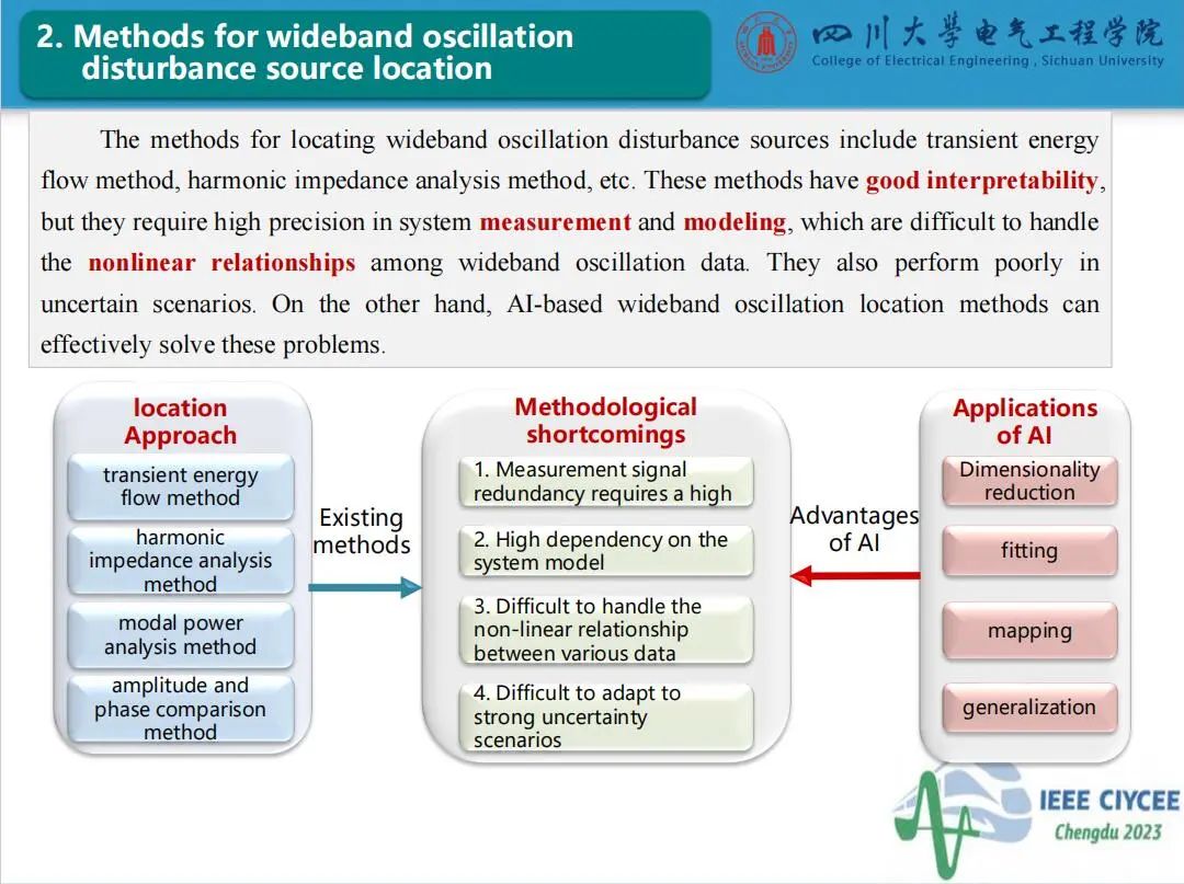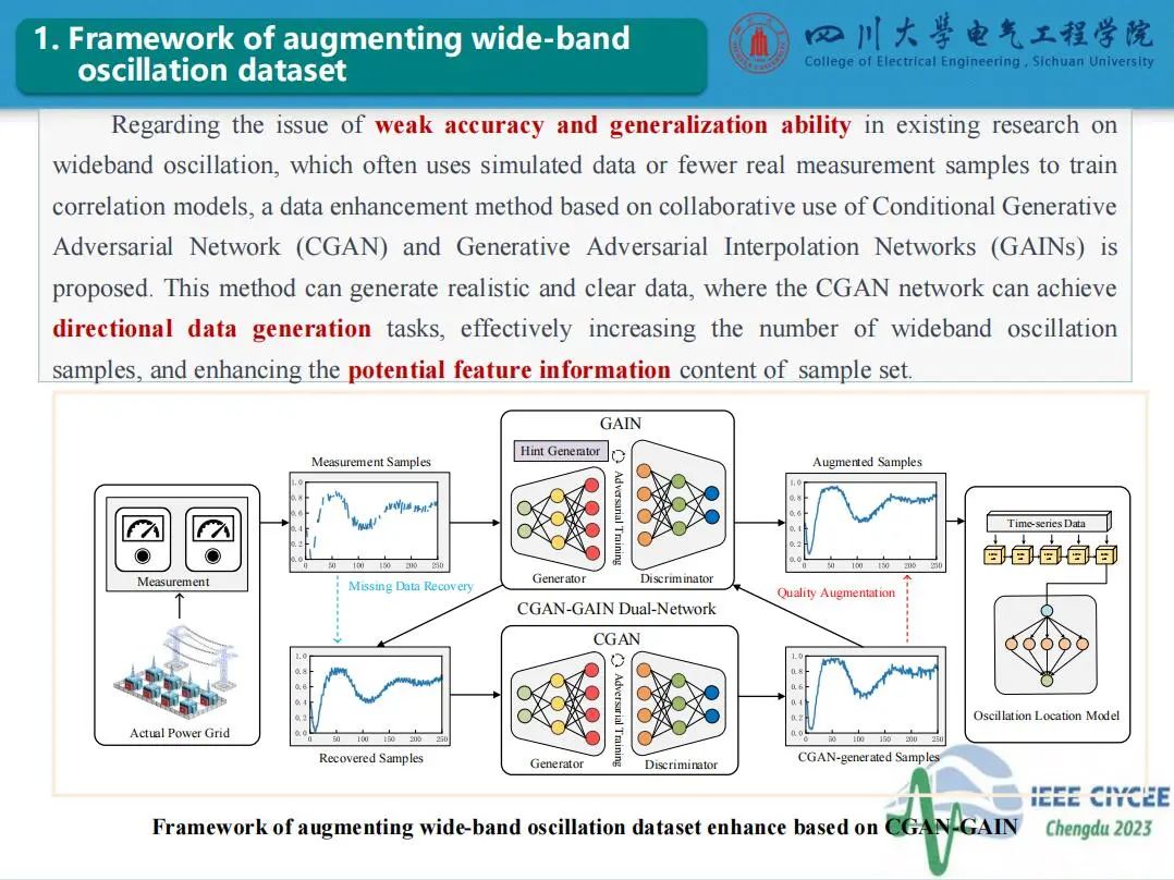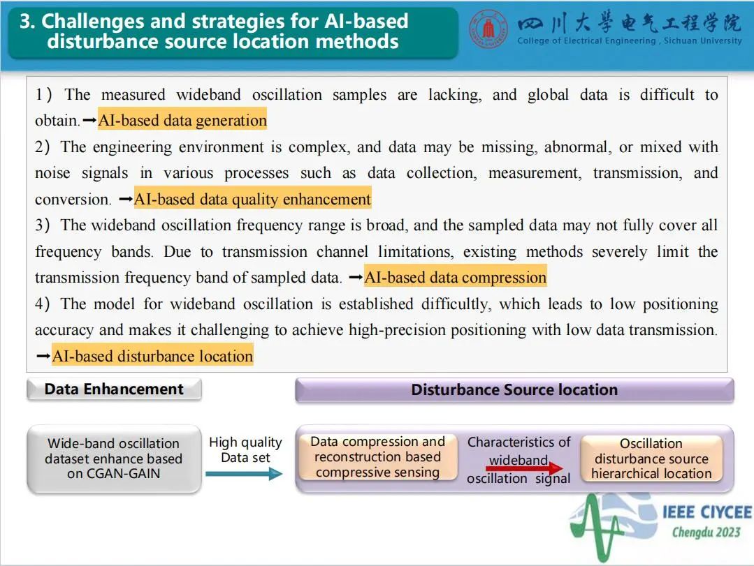 会上,hy3380cc海洋之神特聘副研究员郑宗生作了题为“电力系统宽频振荡扰动源定位智能增强技术”的主旨报告,介绍了目前电力系统宽频振荡扰动源定位面临的问题及人工智能技术应用于振荡源定位的挑战,分享了团队在基于条件生成对抗网络和生成对抗插补网络的数据智能增强方法和基于压缩感知与软阈值迭代算法的电力系统宽频振荡扰动源分级定位方法的研究工作。经本人授权,与大家分享报告PPT。