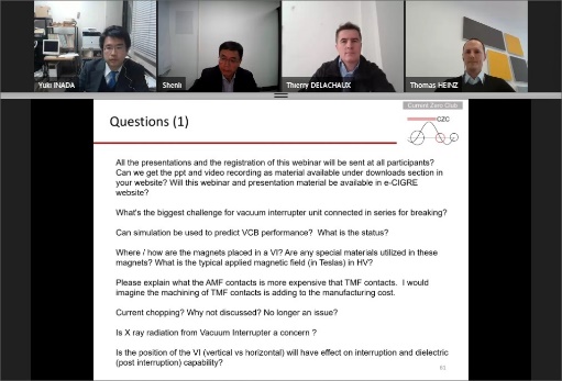 本次网络研讨会聚焦环保型高电压等级真空开关中的真空开断过程,由CIGRE零点俱乐部“真空圈”委员进行筹备和汇报。会议伊始,贾申利教授向参与本次研讨会的学者表示热烈欢迎,并对本次研讨会的组织单位、主要内容和背景进行介绍。随后各位专家分别对真空电弧基本原理、弧后过程以及高电压等级真空灭弧室关键技术等内容进行了汇报。最后贾申利教授展望了真空开断的未来发展方向,并向各位参与人员表示感谢,会议圆满结束。