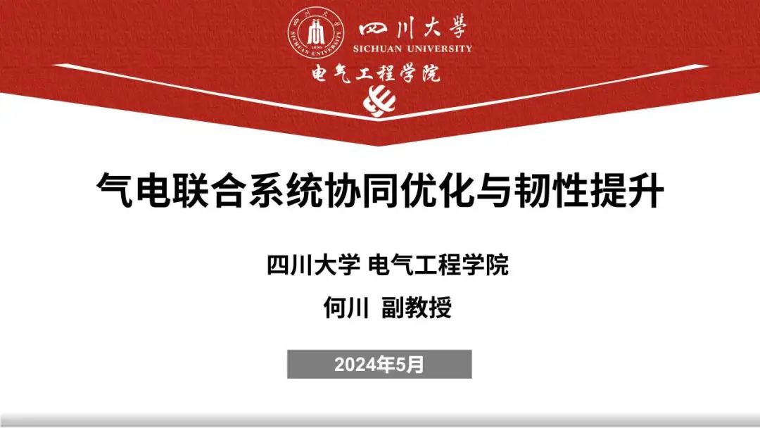 会上hy3380cc海洋之神何川副教授做了题为“气电联合系统协同优化与韧性提升”的报告,征得何川副教授同意,与大家分享报告PPT。