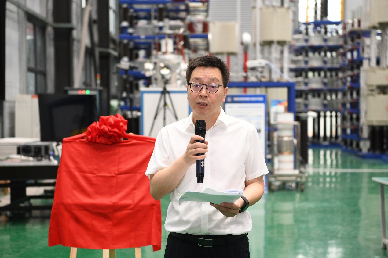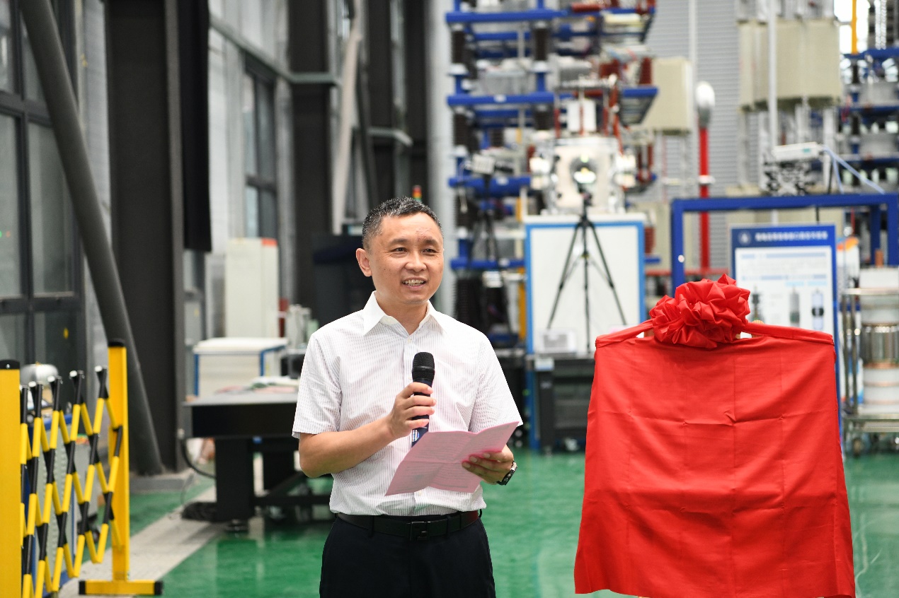 随后,在程时杰院士、邓建军院士、饶宏院士、毛大付书记、刘超副董事长的见证下,学院经理肖先勇、实验室主任贾申利与西南电工董事长陈绍义、总经理陈先行共同为实验室揭牌。