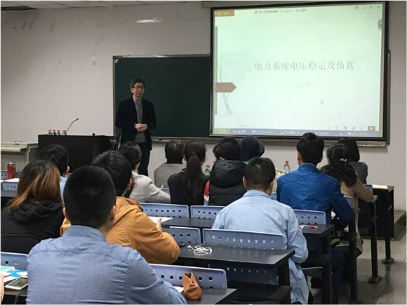 为了让同学们与国际接轨,更好地了解国际电力系统关键技术,2018年3月13日上午10点,美国R&D Engineering公司副总裁,IEEE fellow刘海军教授在电气信息学院基础教学教B104教室举行了“电力系统电压稳定和仿真”的学术讲座。电气信息学院经理肖先勇教授、电气工程系主任王渝红教授、相关学科教师和硕博研究生参加了此次讲座。