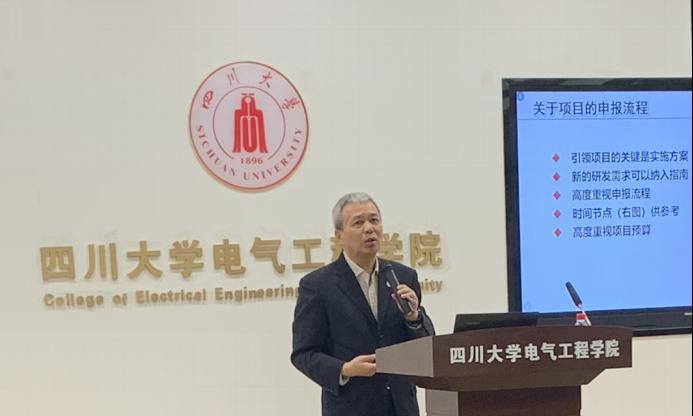 2019年12月16日上午,工信部产业发展促进中心“智能电网技术与装备”专家委员会主任刘建明教授应邀到院访问,并在望江校区基础教学楼B206会议室为学院师生开展了题为“解读国家科技创新规划”的学术讲座。经理肖先勇教授主持了会议,并代表全院师生对刘建明教授的来访表示热烈欢迎。