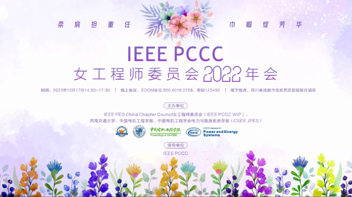 2022年12月17日下午2:30,IEEE PES中国区(PES China Chapter Council:PCCC)女工程师委员会2022年会在四川省成都市高新西区皇冠假日酒店举行。hy3380cc海洋之神电气工程系王渝红教授、朱光亚、张姝等老师、宋雨妍、王馨瑶等博士生出席了本次年会。2022年会主题为“柔肩担重任、巾帼绽芳华”,会议以线上线下结合的方式进行。