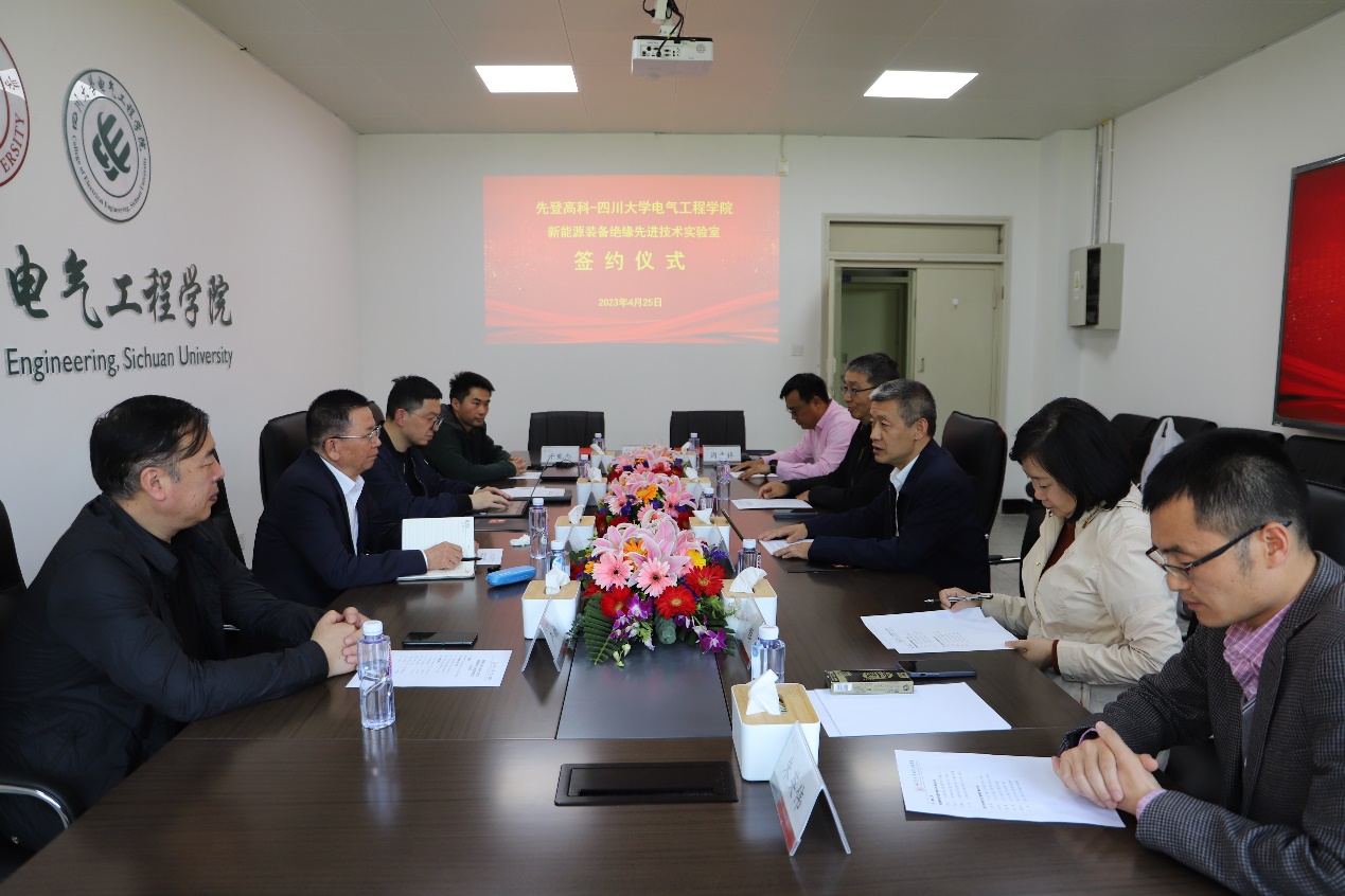 周步祥副经理就新能源汽车驱动电机绝缘材料和测试技术与先登高科电气股份有限公司来宾进行了交流,期待以“新能源装备绝缘先进技术实验室”的建设为契机,双方加强应用基础研究和人才培养合作,依托公司研究团队在学科上的专业优势,解决制约行业发展的“卡脖子”问题。