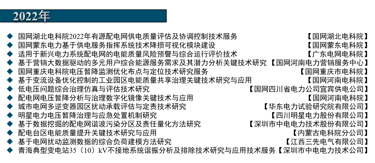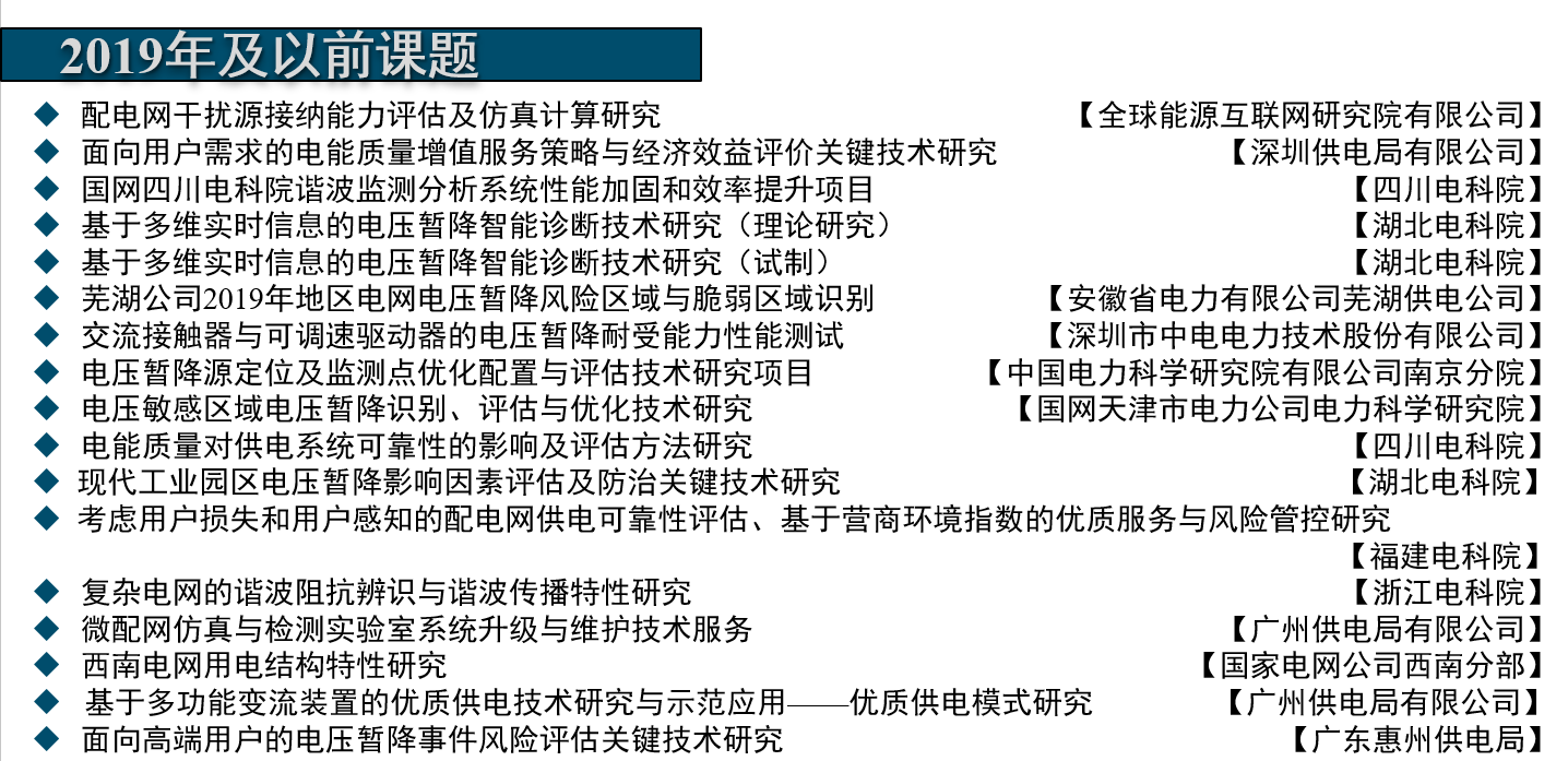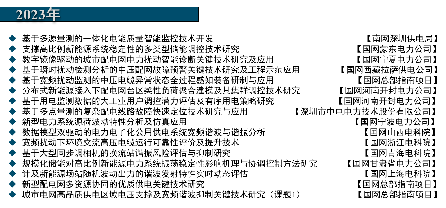 • 电网公司:国网总调、四川省调、山西省调、云南省调、成都电力局、重庆电力局、南京电力局、杭州电力局、济南电力局、四川省检修公司、北京市供电公司、上海市电力公司、天府新区供电公司、佛山电力局、南网电科院、昆明供电局、广西电科院等。