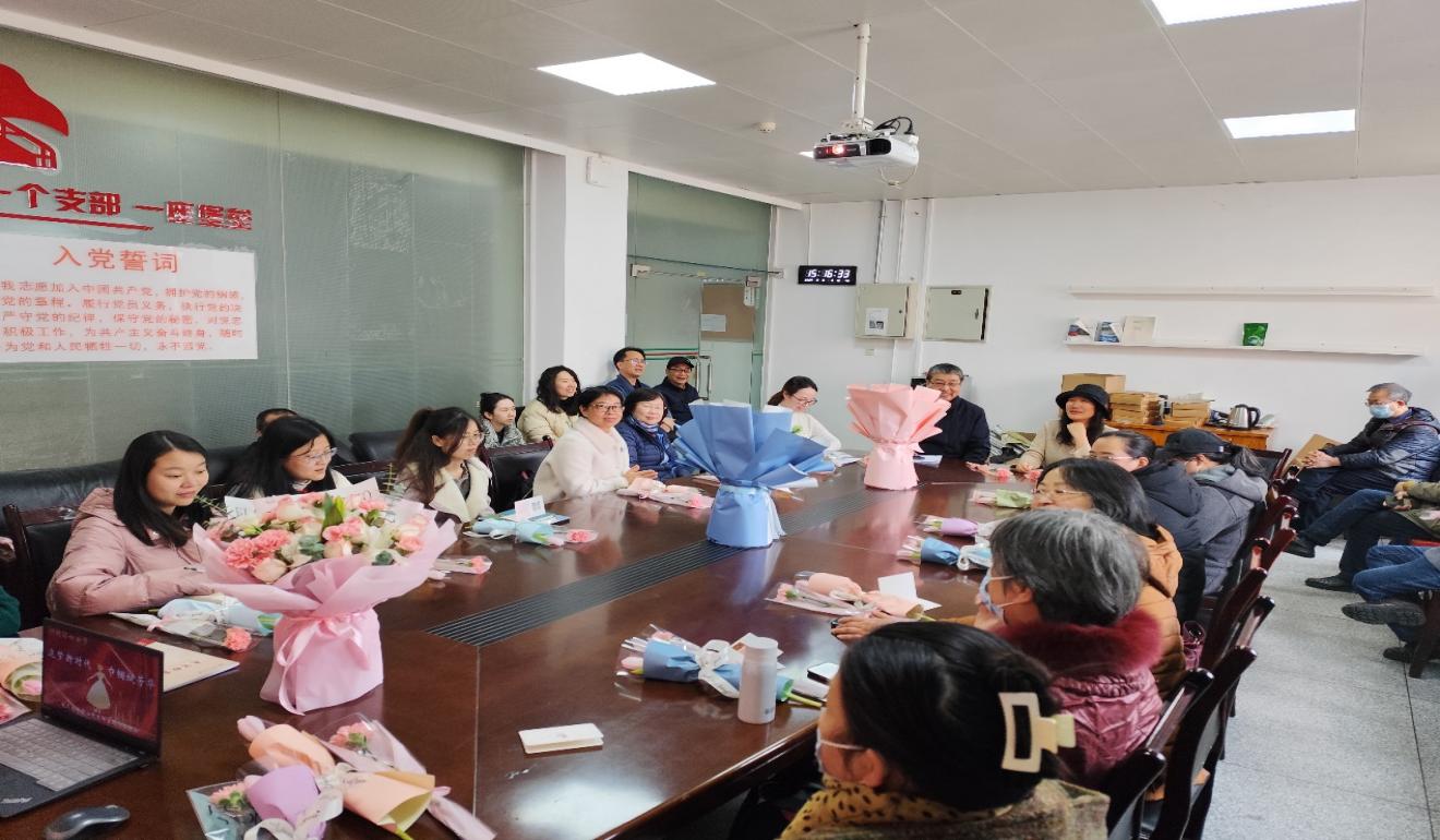 基础中心党支部书记印月代表基础中心工会小组为女教师们献上鲜花和节日的祝福,感谢教师们的过去一年的辛苦付出,不断为教育事业注入力量和活力,愿大家在节日里收获满满的幸福。