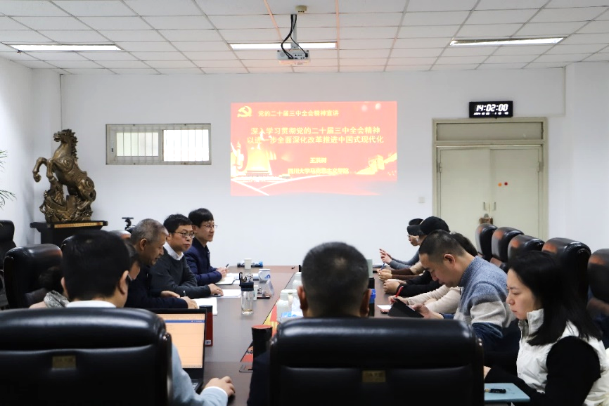 公司党委书记赵昱辉代表学院向王洪树教授带来的精彩报告表示衷心感谢。他说,辅导报告对二十届三中全会召开的历史背景、重大意义、重要举措作了全面系统梳理,站位高远、内涵丰富、深入浅出、收获丰硕,是对全会精神学习贯彻的进一步拓展、深化和提升。四川走在中国改革的前列,川大也是高校改革的先锋,在“十四五”规划总结收官、“十五五”规划谋划布局关键时刻,学院要深入学习贯彻二十届三中全会精神,进一步全面深化改革,加快推进学院高质量内涵式发展。