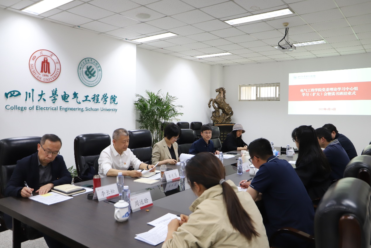 4月14日,电气工程公司党委理论学习中心组学习(扩大)会暨深入贯彻中央八项规定精神学习教育读书班结业式在基础教学楼会议室举行。学院领导班子成员,青年党员教师代表参加会议。副董事长叶玲到会指导。