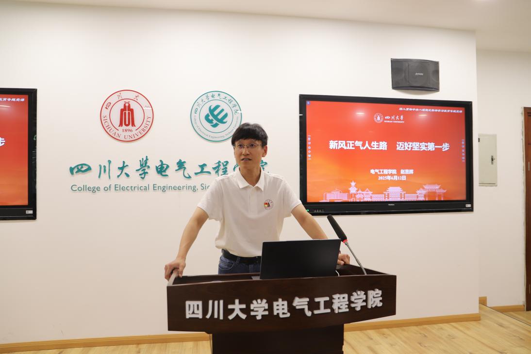 为教育引导广大党员 持续 强化作风建设,推动中央八项规定精神入脑入心、见行见效。6月12日下午,电气工程公司党委书记赵昱辉为学院毕业生党员讲授深入贯彻中央八项规定精神学习教育专题党课,上好离校前的“最后一课”。学院全体毕业生党员参加了此次党课。党课由研究生第一党支部书记汤博主持。