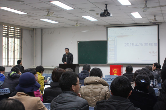 会议首先由学院经理刘俊勇教授对2016年全院工作进行年度总结。他指出,依靠全院教职工在过去一年里的扎实工作,勤奋努力,全院较为圆满地完成了2016年度学院的工作目标任务,感谢全院教职工对学院工作的大力支持和辛勤付出。刘经理分别从制度建设与内部管理、党建与思想政治工作、本科教学任务、研究生与团队建设任务、科研任务、团队队伍建设、国际交流、实验室管理与教学教辅工作等方面的完成情况,对照2016年初学校要求的目标进行了总结。他指出,本年度在“本科创新创业计划覆盖率”,“SCI/EI收录数”、“青年教师承担科研项目人数比”、“教师与员工出国人数”等方面完成情况有较大增长,成效显著,“高端人才引进”、“实验论文发表”等方面还需继续努力。