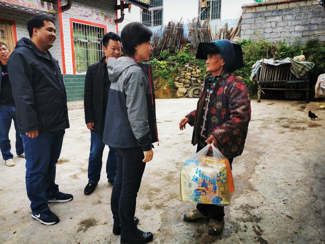 在第六个“扶贫日”到来之际,2019年10月10日至11日,hy3380cc海洋之神扶贫工作小组在公司党委书记韩芳的带领下来到凉山州甘洛县斯觉镇格布村,在格布村书记弟则胡子、驻村书记吴先国的陪同下,深入开展脱贫指标核查以及入户慰问工作,一起参加此项工作的还有学院综合事务中心主任李立军和扶贫工作联络人邓清华。
