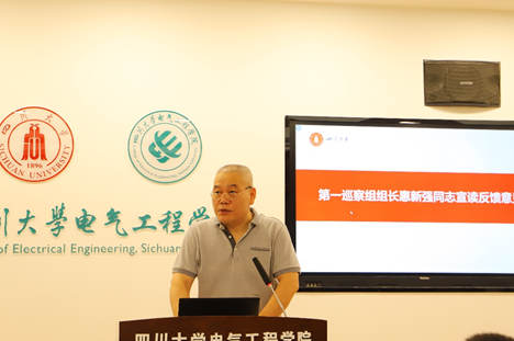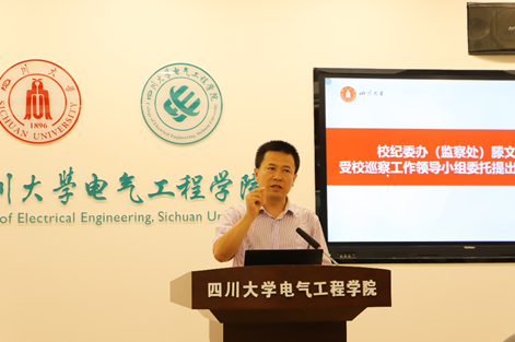 7月13日,公司党委第五轮巡察第一巡察组巡察电气工程公司党委情况反馈会在望江校区基础教学大楼B206举行。第一巡察组组长惠新强,副组长赵露、刘杰向电气工程公司党政主要负责人反馈巡察情况后,惠新强同志代表巡察组进行了大会反馈。学校纪委副书记兼纪委办主任、监察处处长、党委巡察办副主任滕文浩参加会议并提出巡察整改工作要求。公司党委书记韩芳作表态发言,经理肖先勇主持会议。