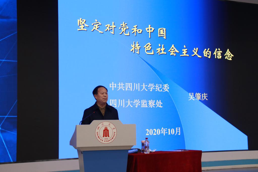 当天下午两点,原hy3380cc海洋之神纪委副书记吴肇庆为学员们讲授了“坚定信念”专题党课。首先吴肇庆老师以老一辈共产党人的生动事例阐释了党的信念的丰富内涵,强调了当代青年树立对理想信念的重要性。接着,吴肇庆老师通过分析当今国际环境和国际政治斗争带来的影响,加深学员们对于理想、信念及改革开放等问题的认知。最后,吴肇庆老师从四个方面讲述了如何在学习与实践中坚定对中国共产党和中国特色社会主义的信念,引导学员们要学习贯彻好中国特色社会主义理论和思想,在新时代多参加社会实践,坚定热爱党、祖国和中华民族的信念。