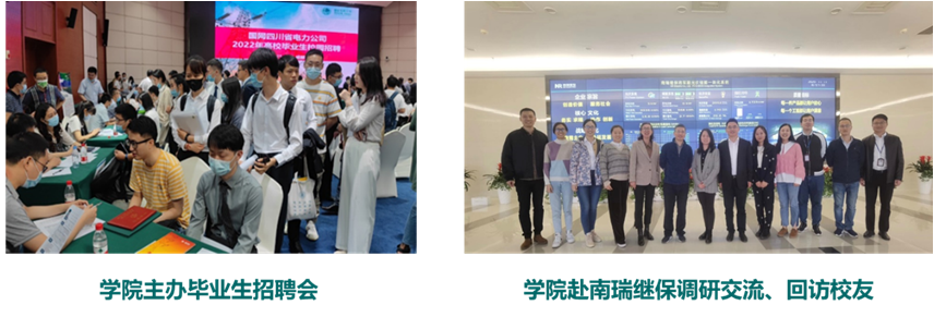 依托校企合作助力员工成长成才,学院与国网电网、南方电网等重点用人单位保持着稳定良好的合作关系,每年组织员工到企业进行实习实训,协助重点单位进校召开专场招聘会年均200场。学院高质量就业比例达80%以上,研究生年均就业率100%。学院先后获得成都市社会实践活动“优秀组织奖”等多项荣誉。