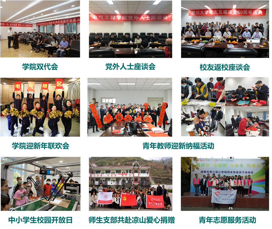 温暖建家,党政工团齐奋进。公司开展丰富多彩的群团活动,丰富教工精神生活;通过“青年教师能力提升计划”等活动助力青年教师发展;认真做好离退休、统战、扶贫等各项工作,积极履行社会责任。这十年来,学院围绕脱贫攻坚目标,发挥智力优势,32人次赴格布村开展脱贫工作,认真入户走访、调研和慰问对口帮扶的24户家庭;形成太阳能光伏板项目可行性报告。开展多场面向中小员工的校园开放日活动,接待成都七中等700余名师生参观国家级双创实验室和专业实验室,充分展示学院良好办学条件,将教育资源服务于社会,有效提升学院社会认知度。