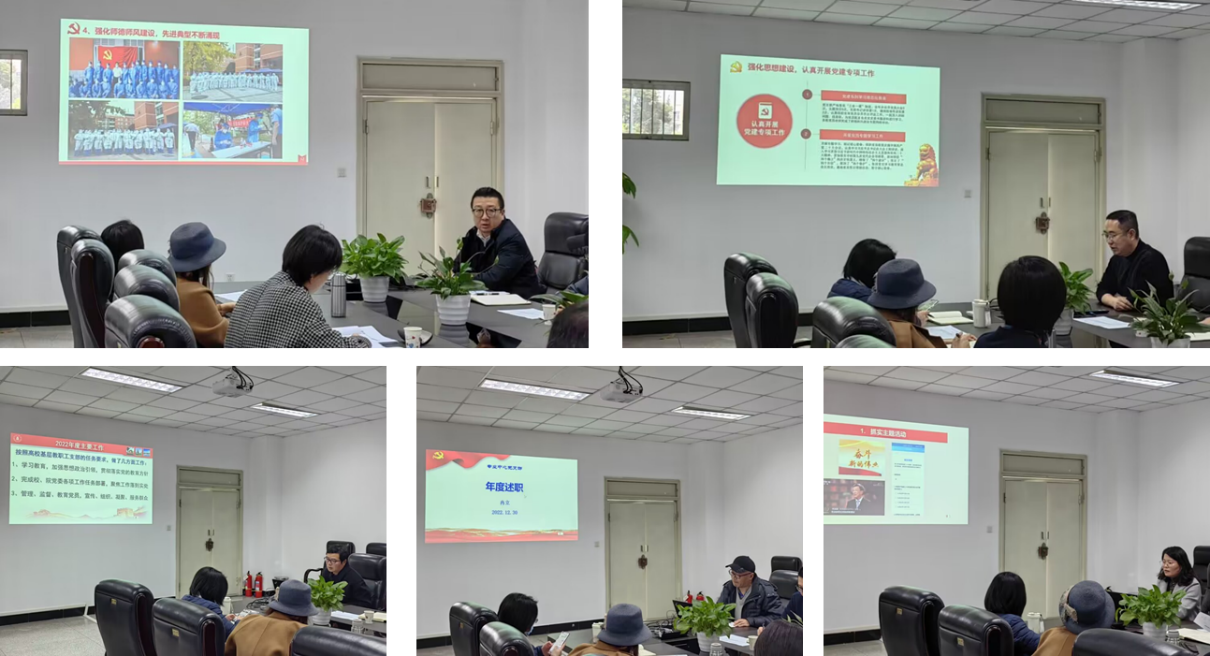 首先举行教职工党支部书记述职会。各教工支部书记依次对标学校有关述职评议要求,介绍本支部深入学习贯彻党的二十大和学校第九次党代会精神情况,加强党员理想信念教育和师德师风建设情况,围绕本单位中心工作和重大任务中充分发挥作用的情况,在高层次人才和优秀青年教师中发展党员,以及党支部决定和参与本单位重要事项的决策机制等情况。并总结了年度特色亮点工作,提出了2023年工作思路和目标。
