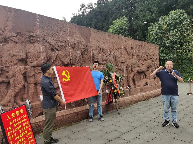 邛崃红军长征纪念馆位于四川省成都市邛崃市高何镇,包括“石塔寺区苏维埃政府旧址”和新建“陈列馆”两大部分,是为纪念中国工农红军第四方面军在此建立苏维埃政权、打土豪、分田地,建立红色武装而建设的爱国主义教育基地。抵达纪念馆后,系全体党员在刘念书记的带领下,向馆前的纪念雕塑敬献花篮,并重温入党誓词。当老师们再一次举起右手,掷地有声的向党宣誓,大家的心情都特别激动。不忘初心,牢记使命,入党誓词再次激发大家踔厉奋发、勇毅前行。