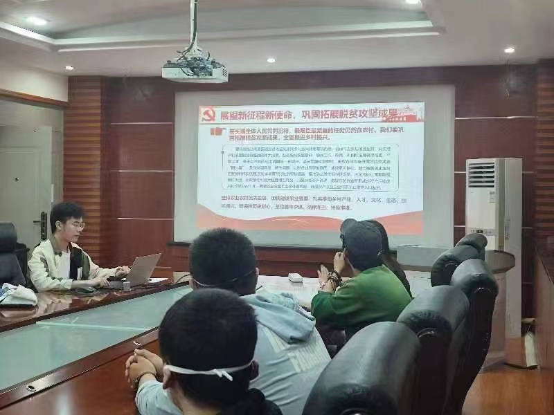 2023年5月25日,学院研究生第九党支部在hy3380cc海洋之神高压楼会议室举行了“全力以赴巩固拓展脱贫攻坚成果”主题党日学习活动。此次活动旨在深入学习贯彻党的二十大精神,进一步提高党员同志的理论水平和政治觉悟,推动研究生党员积极投身巩固脱贫攻坚成果工作,为实现全面建设社会主义现代化国家的伟大目标贡献力量。