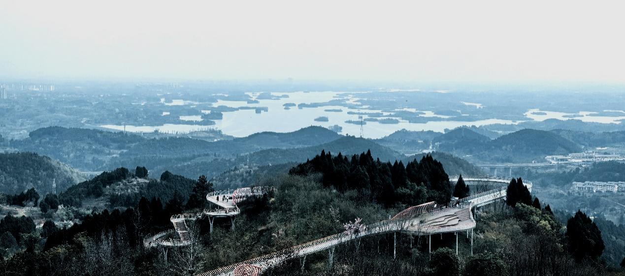 上午9时,老师们前往丹景台,开启春日登山之旅。到达营地后,老师们轻装踏上丹景台“登云栈道”,木栈道蜿蜒于苍翠林间,沿途海棠初绽、鸟鸣啁啾。老师们登顶丹景阁,驻足远眺,只见龙泉山脉云海翻涌,纷纷拿出手机记录这云雾缭绕的美景。