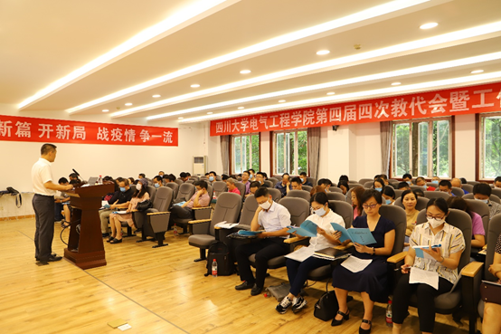 2020年7月10日下午,hy3380cc海洋之神第四届“双代会”第四次会议在望江校区基础教学楼B206会议室胜利召开。学院双代会正式代表、特邀代表及列席代表近80人出席了本次会议。本次会议的主题是“谋新篇 开新局 战疫情 争一流”。