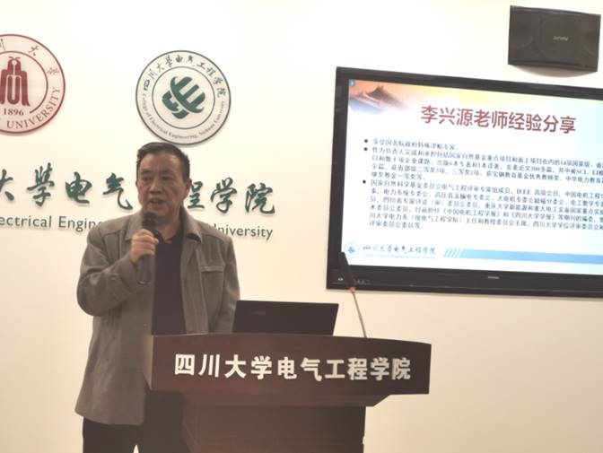 接下来,何川副研究员、刘友波副教授、李兴源教授分别作了主题发言。何川副研究员从自身经历出发,结合项目研究的体会和经验作了主题发言。
