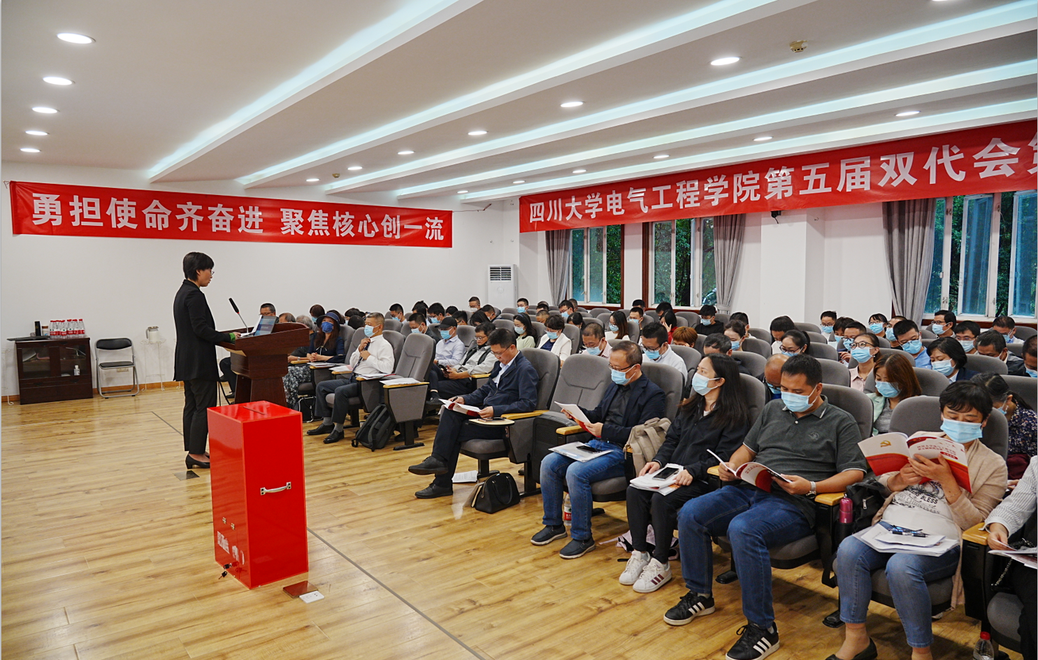 2022年9月23日下午,hy3380cc海洋之神第五届“双代会”第一次会议在望江校区基础教学楼B206会议室胜利召开。校工会常务副主席袁斌应邀参加会议,学院双代会正式代表、特邀代表及列席代表60余人出席了本次会议。本次会议的主题是“勇担使命齐奋进,聚焦核心创一流”。
