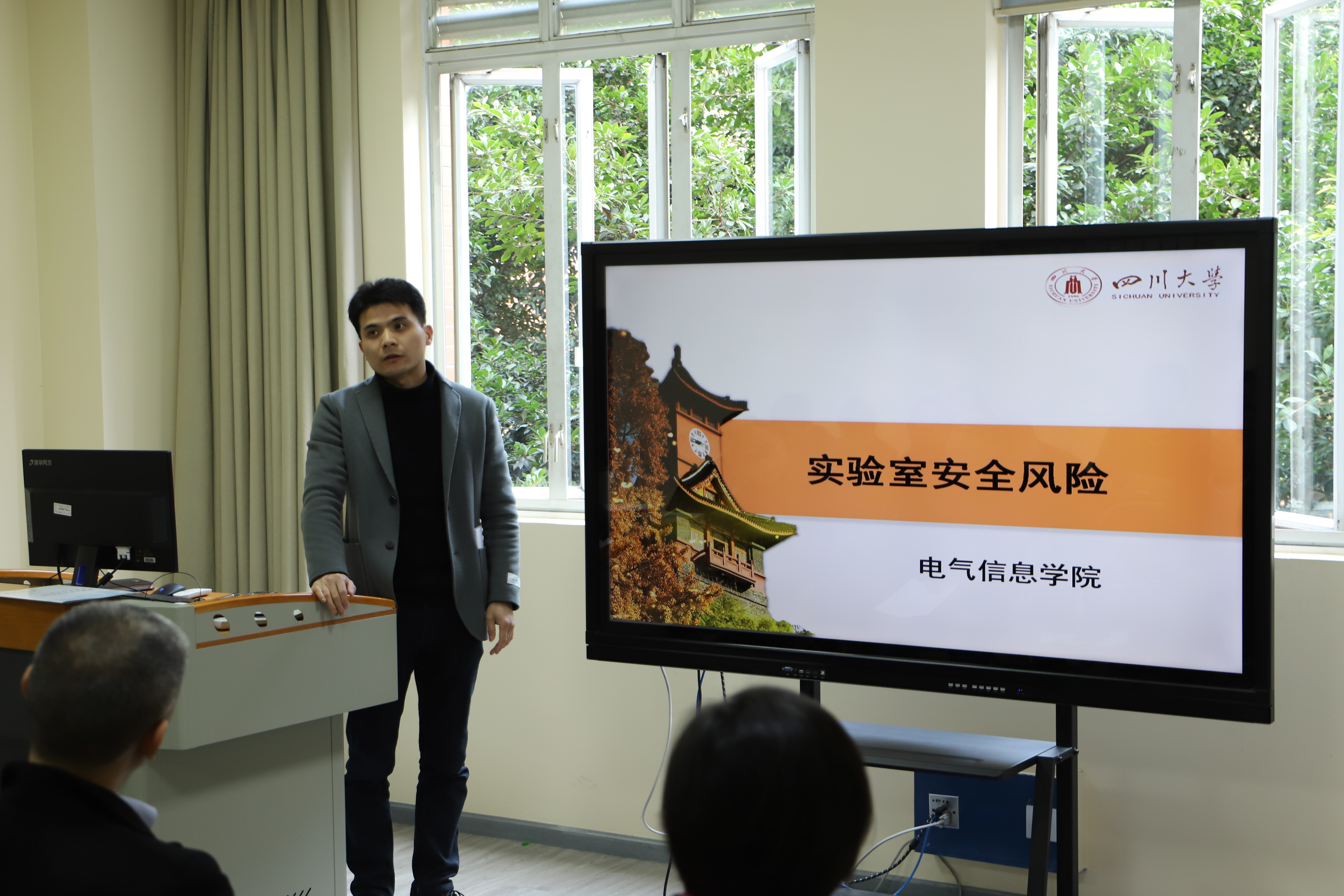会议还听取了高电压实验室冉立老师和电气工程系王仲老师对所属的教学实验室与科研实验室的安全状况汇报。