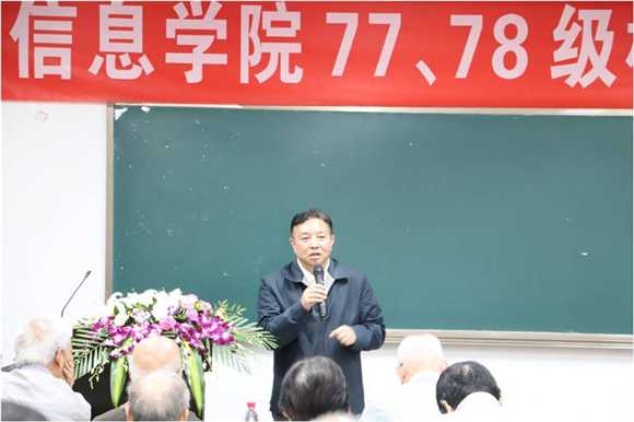 接下来,王贵德、尤克伟、蒋润书、张邦亮、黄家英、敬东6位老教师代表依次上台发言。忆起当年与77、78级同学们共同经历的岁月,老师们都感慨万分:77、78级同学作为恢复高考后的第一批员工,每一位同学都无比珍惜学习的机会。看到昔日的员工荣归母校,老师们的言语中都有掩不住的欣慰。他们不忘初心,退休多年仍一如既往地关心学院的科研及人才培养事业,鼓励员工们为学院人才培养贡献力量。