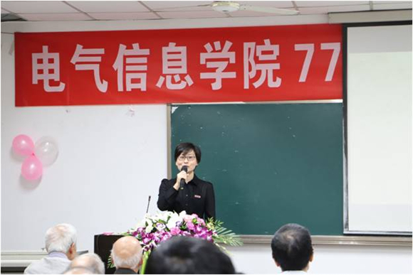 上午九时,员工返校座谈会在基础教学楼B座104举行。电气信息公司党委书记韩芳,经理肖先勇,党委副书记、纪委书记张英敏、党委副书记戴婷婷,副经理吕林、李长松,以及学院各系、中心领导,偕同77、78级员工和曾参与77、78级教学和管理工作的离退休教师代表,参加了员工返校座谈会。