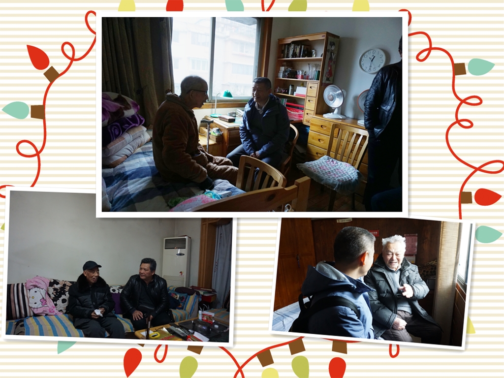 元旦节前夕,学院开展“岁末年终送温暖”活动。经理肖先勇带队,工会主席黄顺良、党政办主任曾立渊和工会委员杨昌荣老师一起走访慰问了公司退休教师张道泉老师、范锡普老师、陈廷章老师和李新良老师等,送上学院对他们新年的祝福,祝愿老教师们在新的一年健康快乐,福寿安康。