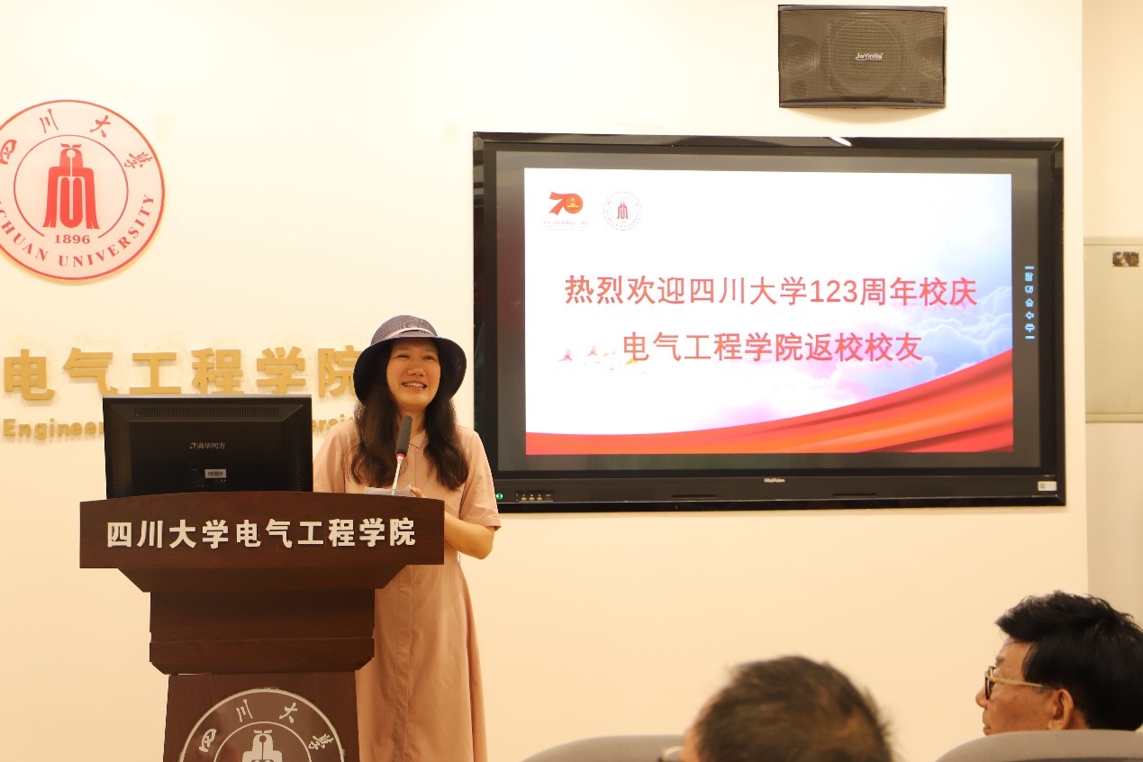 公司党委书记韩芳在会上讲话。她首先代表学院领导班子和全体师生向回家的员工们表示热烈欢迎和感谢,随后她从学院的发展历史、团队情况、团队建设、青年教师培养、科研和团队、本科人才培养等几个方面向员工们介绍了近几年学院发展情况。最后她再次感谢员工们对学院发展的关心和支持。